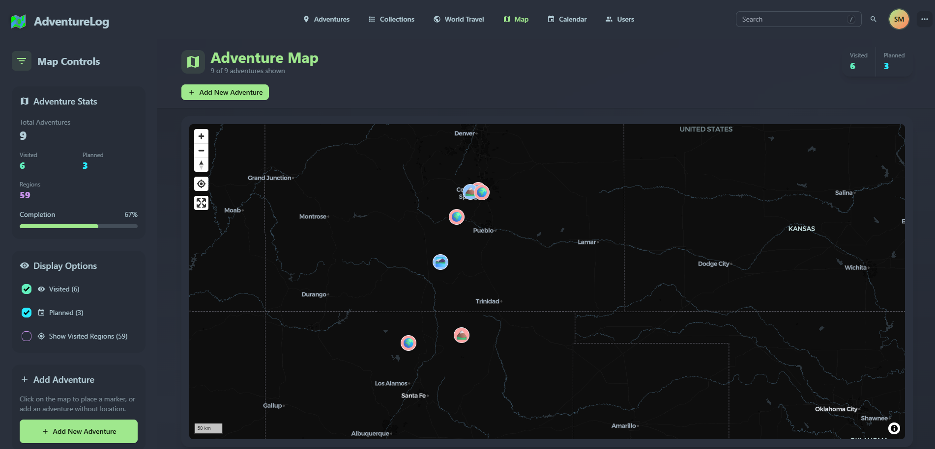 Update screenshots for adventures, countries, dashboard, details, edit, itinerary, map, and regions