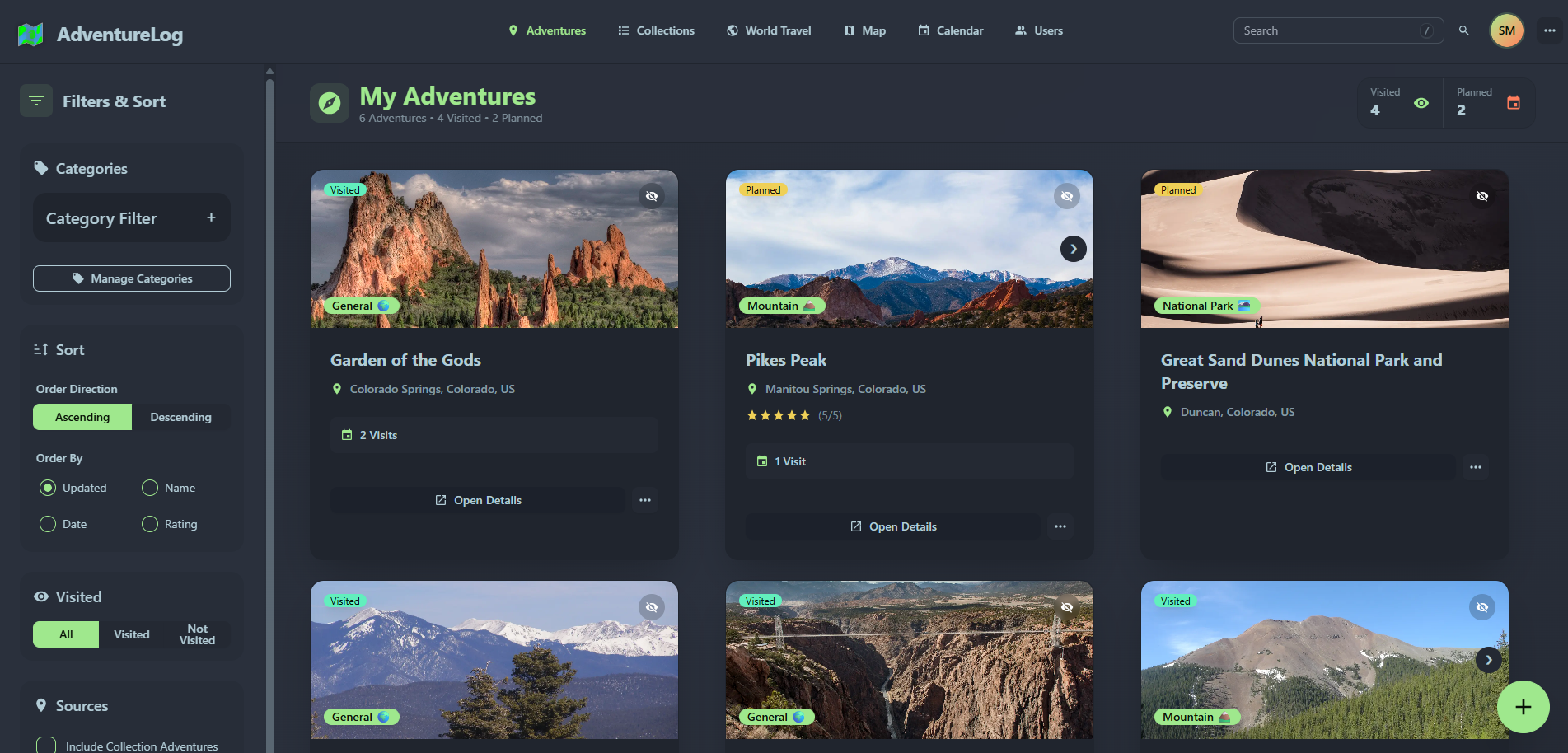 Update screenshots for adventures, countries, dashboard, details, edit, itinerary, map, and regions