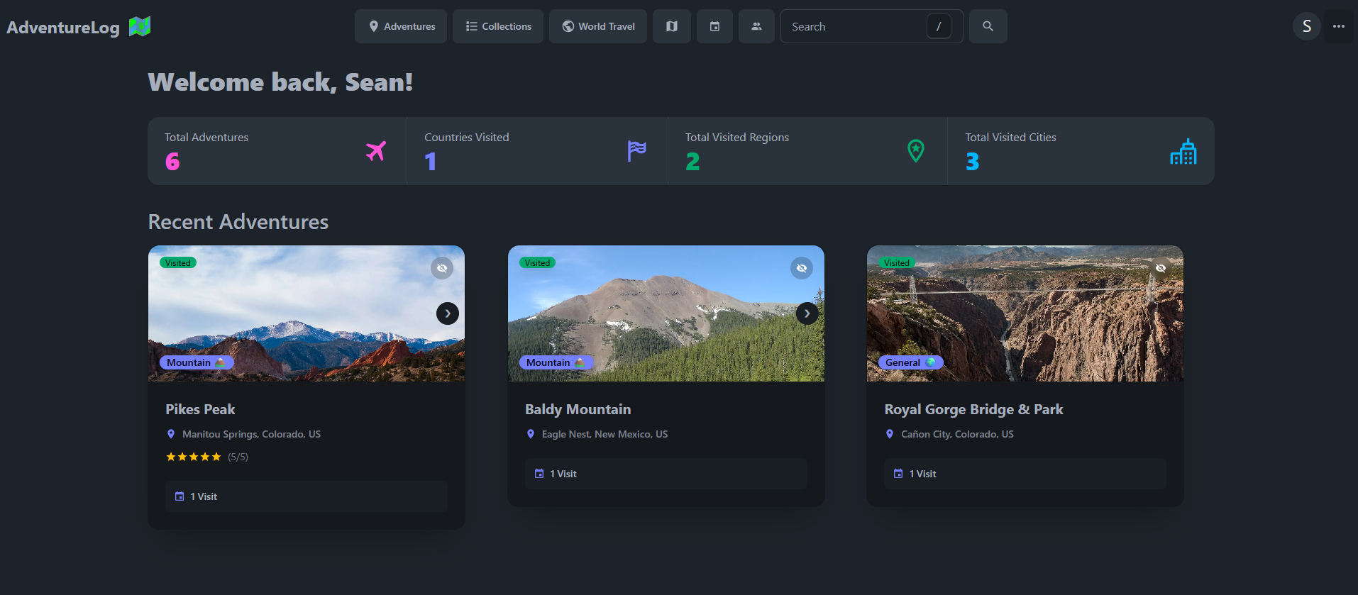 chore: update screenshots for adventures, countries, dashboard, details, edit, itinerary, map, and regions